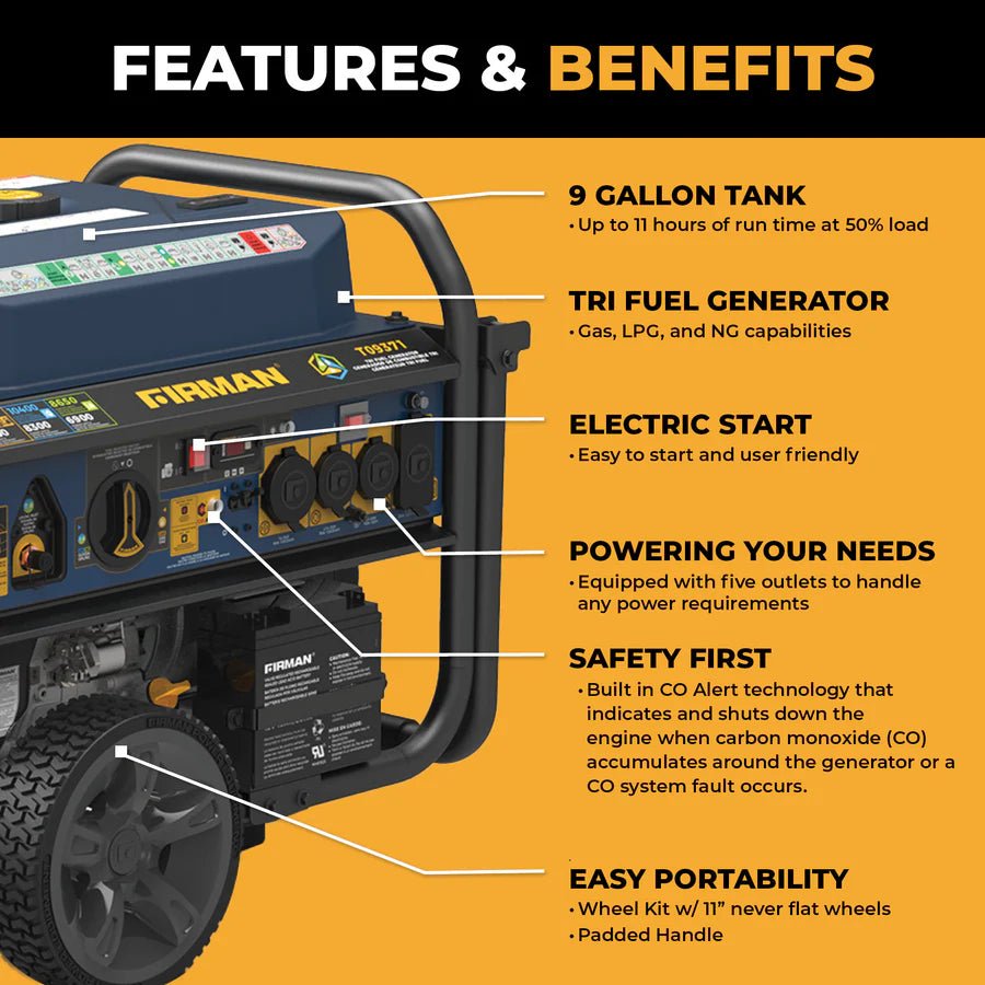Firman 9400W Tri Fuel Portable Generator